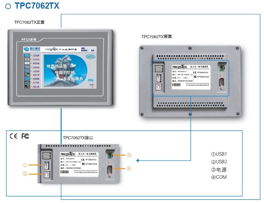 TPC7062TX,是一套以先進(jìn)的Cortex-A8 CPU為核心(主頻600MHz)的高性能嵌入式一體化觸摸屏。該產(chǎn)品設(shè)計(jì)采用了7英寸高亮度TFT液晶顯示屏(分辨率800×480),四線電阻式觸摸屏(分辨率4096×4096)。同時(shí)還預(yù)裝了MCGS嵌入式組態(tài)軟件(運(yùn)行版),具備強(qiáng)大的圖像顯示和數(shù)據(jù)處理功能。