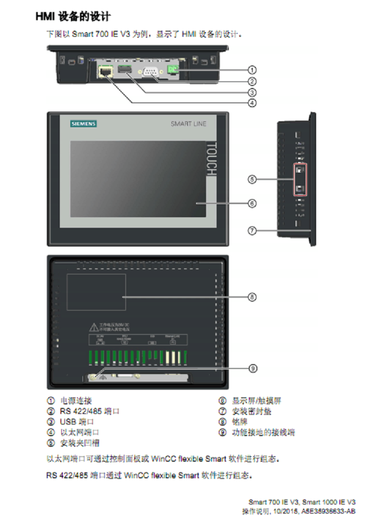 1、 西門子HMI SMART LINE V3系列寬屏7寸支持橫向和豎向安裝方式;