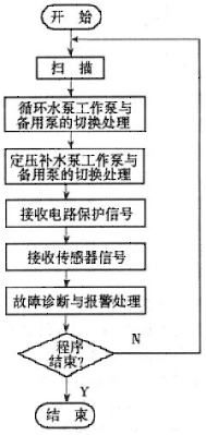 本系統(tǒng)為PLC實(shí)時設(shè)備監(jiān)控系統(tǒng)。對20臺循環(huán)水泵、16臺定壓補(bǔ)水泵進(jìn)行PLC的定時起、停控制,包括主、備用泵(循環(huán)水泵、定壓補(bǔ)水泵)的定時切換、水泵前端的水流信號檢測和報(bào)警,水泵過載短路故障報(bào)警。
