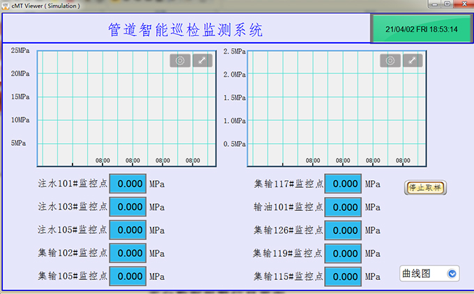 當(dāng)出現(xiàn)壓力過大時,中控室會發(fā)出聲光報警提醒工作人員,工作人員可通過觸摸屏上的按鈕關(guān)閉或打開閥門,防止原油泄漏。大大降低的安全事故,節(jié)省了人工成本。