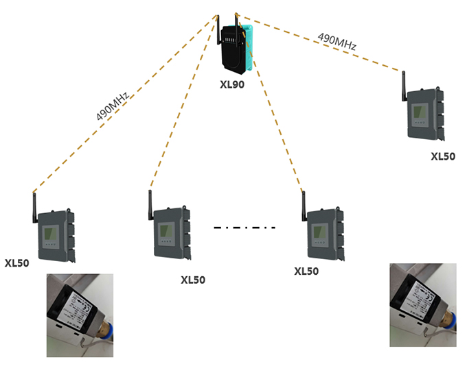 ?XL50通過無線,上傳瞬時(shí)流量、累積流量數(shù)據(jù)至XL90網(wǎng)關(guān)