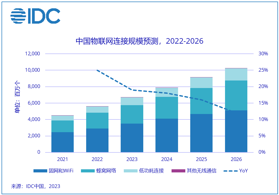 查看更多《"十四五"國家信息化規(guī)劃》提出,到2025 年,以5G、物聯(lián)網(wǎng)、云計算、工業(yè)互聯(lián)網(wǎng)等為代表的數(shù)字基礎設施能力達到國際先進水平。中國正大力推動物聯(lián)網(wǎng)與其他新一代信息技術加速集成和融合,物聯(lián)網(wǎng)連接規(guī)模和應用持續(xù)增長。IDC預測,2022年達56億個,到2026年將增至約102.5億個,...