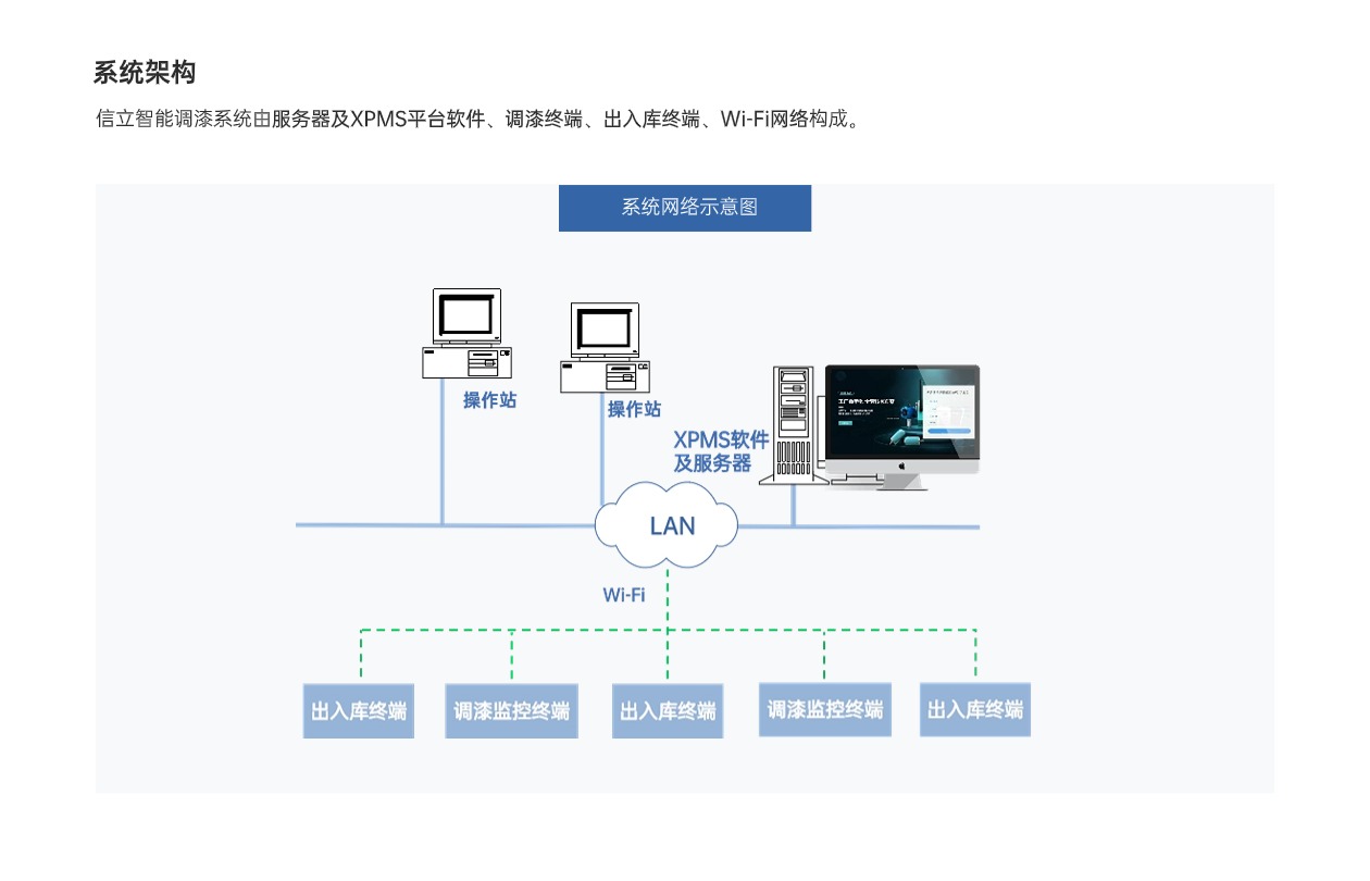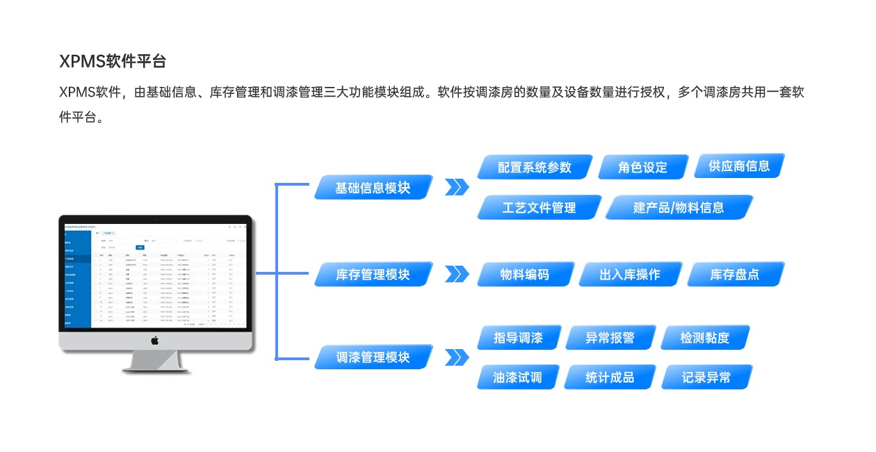 信立調(diào)漆管控系統(tǒng)XPMS,應(yīng)用工業(yè)物聯(lián)網(wǎng)技術(shù)、數(shù)據(jù)庫(kù)及智能化平臺(tái)軟件,標(biāo)準(zhǔn)、規(guī)范、指導(dǎo)、監(jiān)管調(diào)漆過(guò)程,實(shí)現(xiàn)調(diào)漆操作智能化、簡(jiǎn)單化,有效提升調(diào)漆質(zhì)量、減少漆料浪費(fèi),降低人為因素風(fēng)險(xiǎn),是一套智能化的調(diào)漆、制漆管控系統(tǒng)。