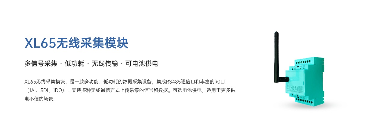 XL65采集模塊,用于監(jiān)測點分散、數(shù)量少、供電不方便的場景。電池供電,變位、超限觸發(fā)功能,更適用于變送儀表信號、開關接點信號采集。