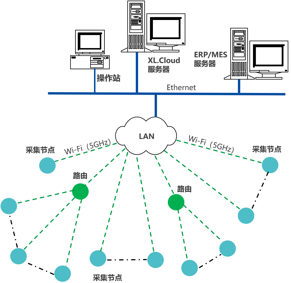 用戶可選第三方生產(chǎn)管控平臺,直接從XL90網(wǎng)關(guān),或采集節(jié)點(diǎn)獲取數(shù)據(jù)