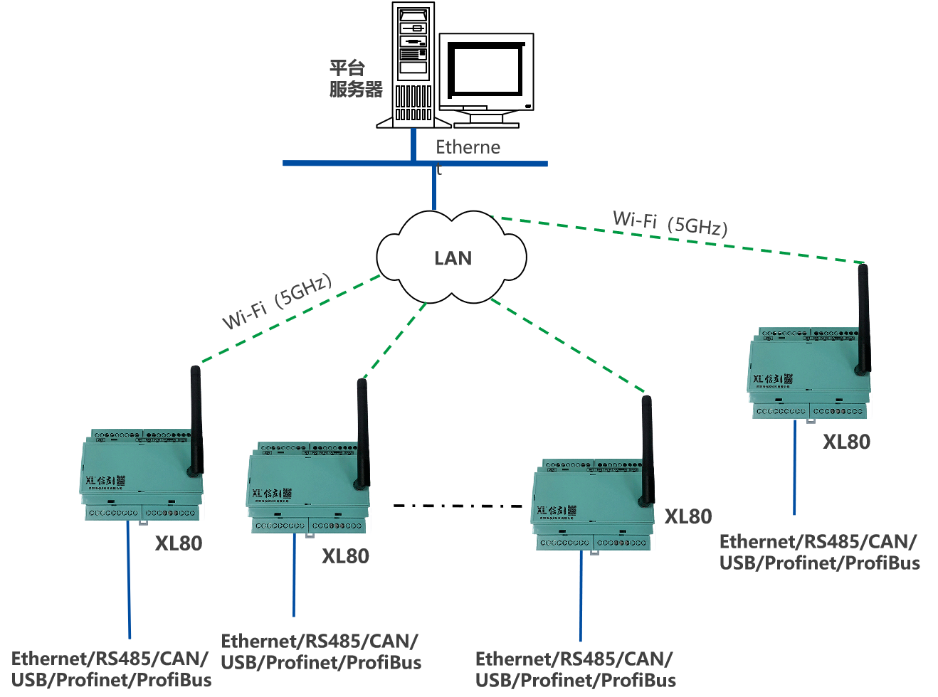 XL80智能主機,通過Ethernet、CAN、USB、Profibus、 Profinet、RS485等接口,讀取數(shù)據(jù);支持Wi-Fi傳輸