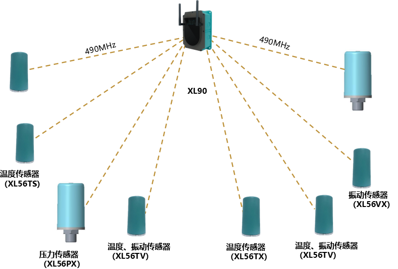1臺(tái)XL90物聯(lián)網(wǎng)關(guān),構(gòu)建兩個(gè)獨(dú)立的LoRa通訊網(wǎng)絡(luò),可接入64(理論上不受限制)臺(tái)智能傳感器
