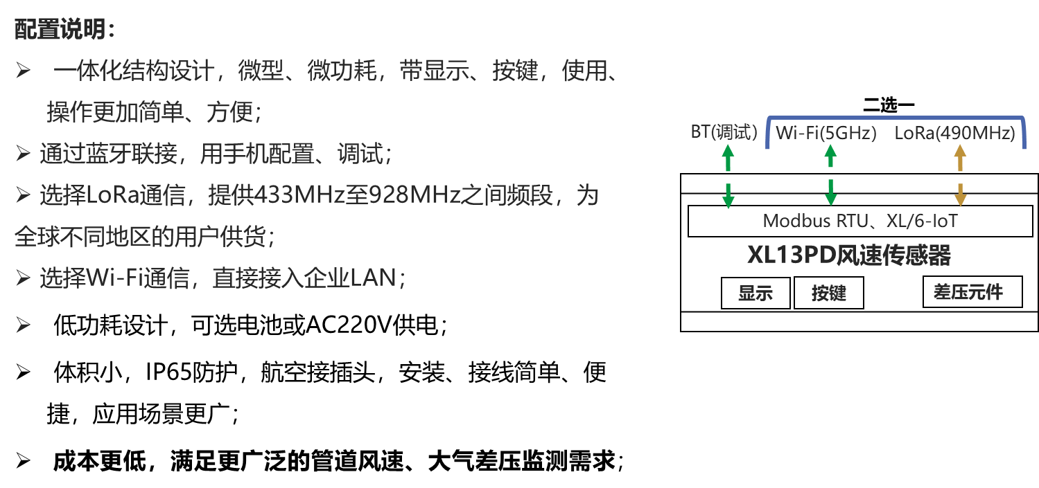 XL13無線風(fēng)速(差壓)傳感器,用于采集排風(fēng)管道內(nèi)風(fēng)速,潔凈空間、車間,實(試)驗室,等空間的大氣差壓。集傳感元件、信號處理,無線傳輸于一體,按低功耗、電池供電標準設(shè)計,體積小,安裝接線簡單、便捷。