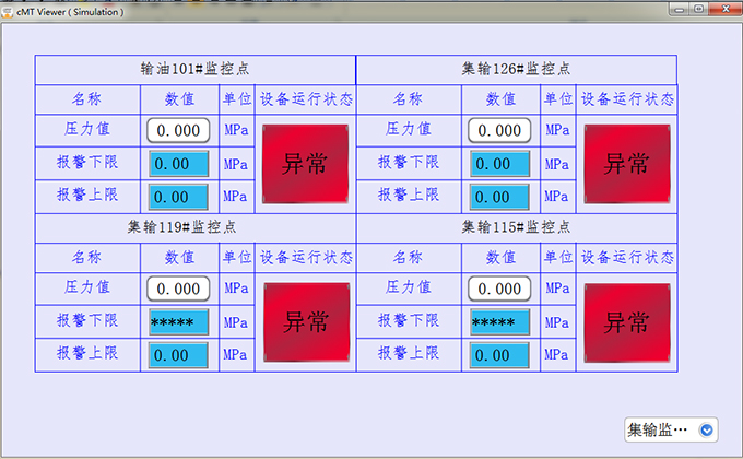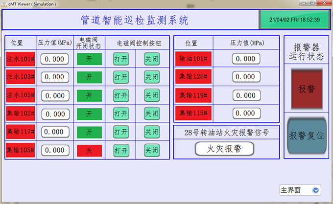 當(dāng)出現(xiàn)壓力過大時,中控室會發(fā)出聲光報警提醒工作人員,工作人員可通過觸摸屏上的按鈕關(guān)閉或打開閥門,防止原油泄漏。大大降低的安全事故,節(jié)省了人工成本。