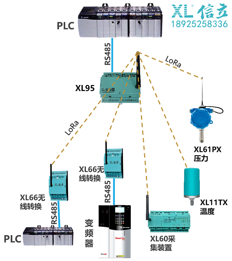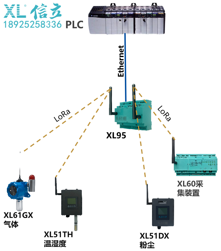 XL9X網(wǎng)關(guān),無線讀取采集節(jié)點(diǎn)的數(shù)據(jù),通過RS485,Ethernet轉(zhuǎn)發(fā)數(shù)據(jù)至PLC;