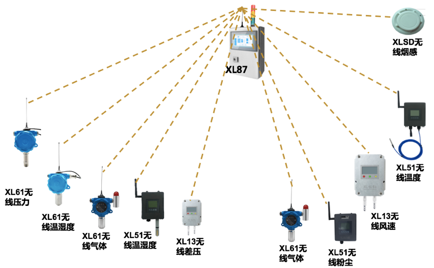 壓力、壓差、煙霧傳感器,溫度、可燃?xì)怏w、有毒有害氣體、粉塵、風(fēng)速、溫濕度、壓縮空氣含水量,等參數(shù),都配置無線傳感器進行采集;