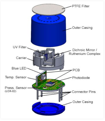 LOX-02熒光氧傳感器的一個關(guān)鍵優(yōu)勢是,該技術(shù)不含鉛成分,暴露在氧氣中不會耗盡熒光染料。