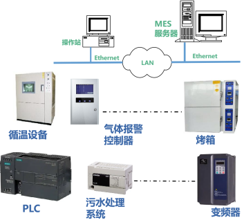 工廠的各種類生產(chǎn)設備、生產(chǎn)系統(tǒng)及監(jiān)控系統(tǒng),需要通過廠內(nèi)LAN接入MES。