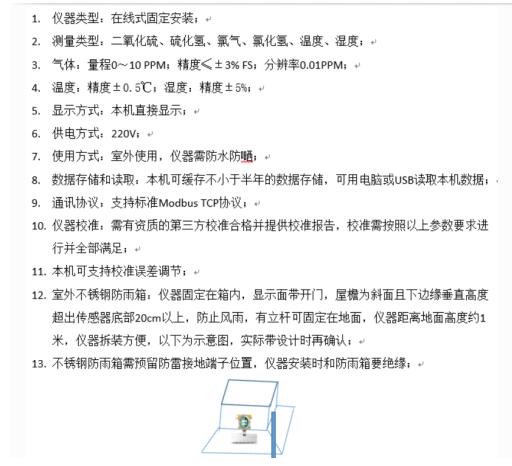 1、按技術(shù)要求,氣體傳感器、二氧化硫、硫化氫、氯氣、氯化氫等技術(shù)參數(shù)都達到如下要求: