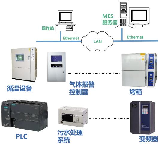 工廠的各種類生產(chǎn)設(shè)備、生產(chǎn)系統(tǒng)及監(jiān)控系統(tǒng),需要通過(guò)廠內(nèi)LAN接入MES。