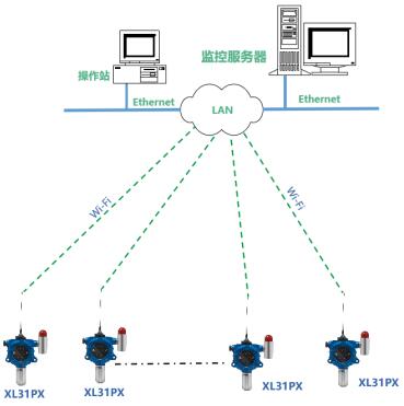 對于Wi-Fi覆蓋的區(qū)域,如化工廠內(nèi)的儲罐等場景壓力監(jiān)測,可采用Wi-Fi傳輸方式,將數(shù)據(jù)通過LAN直接推送數(shù)據(jù)至監(jiān)控服務(wù)器。