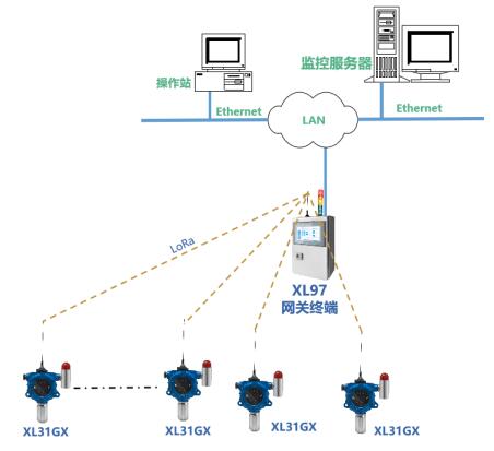 增加現(xiàn)場集中監(jiān)視,可配XL97網(wǎng)關終端,讀取區(qū)域內(nèi)氣體傳感器數(shù)據(jù),分析處理、顯示、報警,并轉(zhuǎn)發(fā)至監(jiān)控中心服務器。