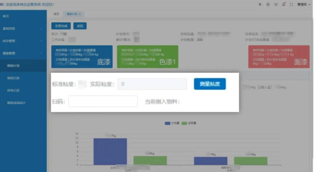 系統(tǒng)實(shí)時(shí)監(jiān)控調(diào)漆過(guò)程,指導(dǎo)操作員按照標(biāo)準(zhǔn)工藝流程進(jìn)行調(diào)和,并實(shí)時(shí)檢測(cè)成品漆粘度是否達(dá)標(biāo),保障每次調(diào)漆作業(yè)的質(zhì)量穩(wěn)定可控,提前發(fā)現(xiàn)問(wèn)題,降低生產(chǎn)成本。