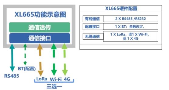 采用XL665無(wú)線(xiàn)轉(zhuǎn)化器,將一路RS485的輸出,轉(zhuǎn)換成一路RS485輸出和一路LoRa無(wú)線(xiàn)輸出,可同時(shí)與兩個(gè)系統(tǒng)或設(shè)備通信傳輸數(shù)據(jù)。