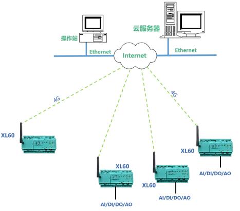 方案三:對于位置偏遠或安裝分散的設(shè)備運行參數(shù),如管網(wǎng)、管溝的壓力、溫度、液位、流量、氣體濃度等信號,XL60無線采集裝置可采用4G通信將采集的數(shù)據(jù)直接上傳至云平臺。