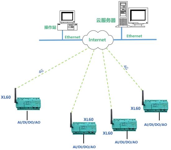 XL60無線采集裝置,由一臺主機模塊和多臺I/O模塊組合而成??刹杉F(xiàn)場變送儀表的電流、電壓信號,控制器輔助接點信號,接收上位機下發(fā)的控制指令,輸出電流、電壓、繼電接點等控制信號。