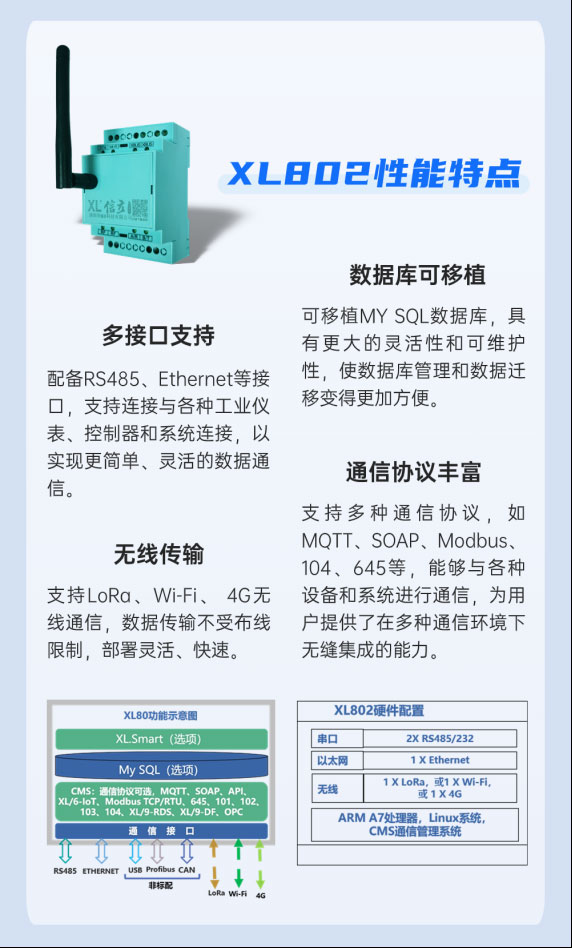 XL802通信主機可通過Ethernet、Wi-Fi將數(shù)據(jù)推送至監(jiān)控平臺,或通過4G直接將數(shù)據(jù)上傳至云平臺。