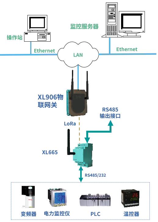2、經(jīng)由XL665無線轉(zhuǎn)換器輸出的LoRa信號,可上傳至物聯(lián)網(wǎng)關(guān),接入監(jiān)控軟件平臺;