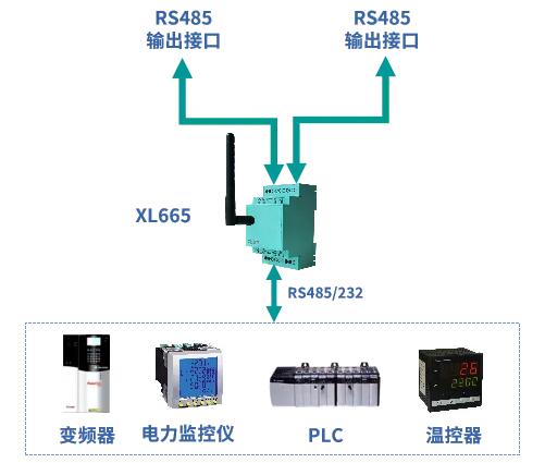 1、經(jīng)由XL665無線轉(zhuǎn)換器輸出的RS485信號,可接入任何支持RS485及儀表通信協(xié)議的設(shè)備;