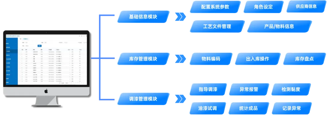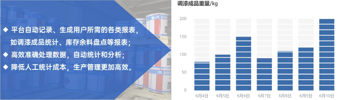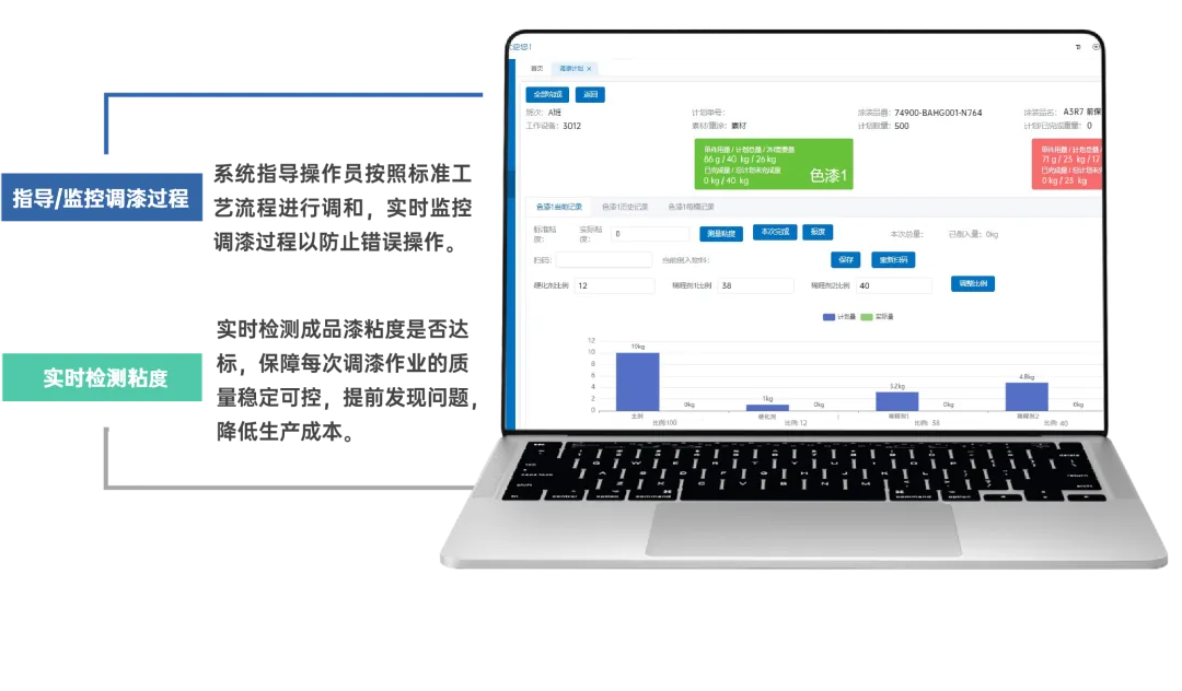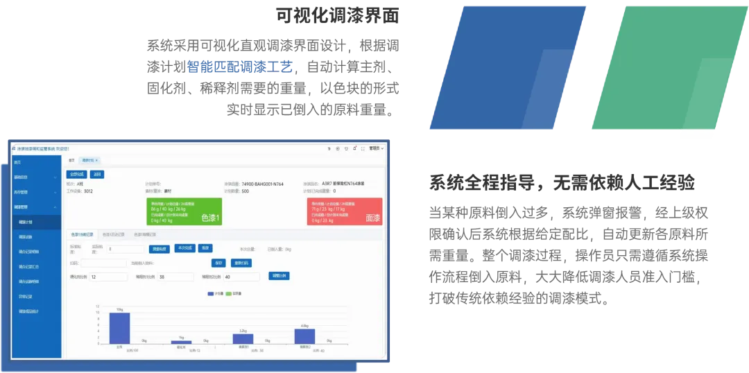 在傳統(tǒng)的調(diào)漆和制漆過程中,過于依賴個人經(jīng)驗技能,靠師傅帶徒弟的方式培訓,人為因素容易導致調(diào)漆質(zhì)量不穩(wěn)定、風險大;漆料選用、使用、調(diào)漆操作等都依賴人工記錄,導致質(zhì)量問題無法追溯、漆料浪費大、統(tǒng)計數(shù)據(jù)不準確等問題。