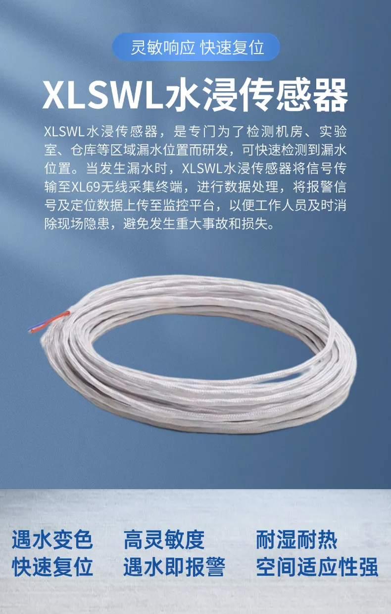 XLSWL水浸傳感器根據(jù)現(xiàn)場實際情況,緊貼地面鋪設(shè),任何地方出現(xiàn)漏水,都能檢測到信號,可快速自動復(fù)位或手動復(fù)位。